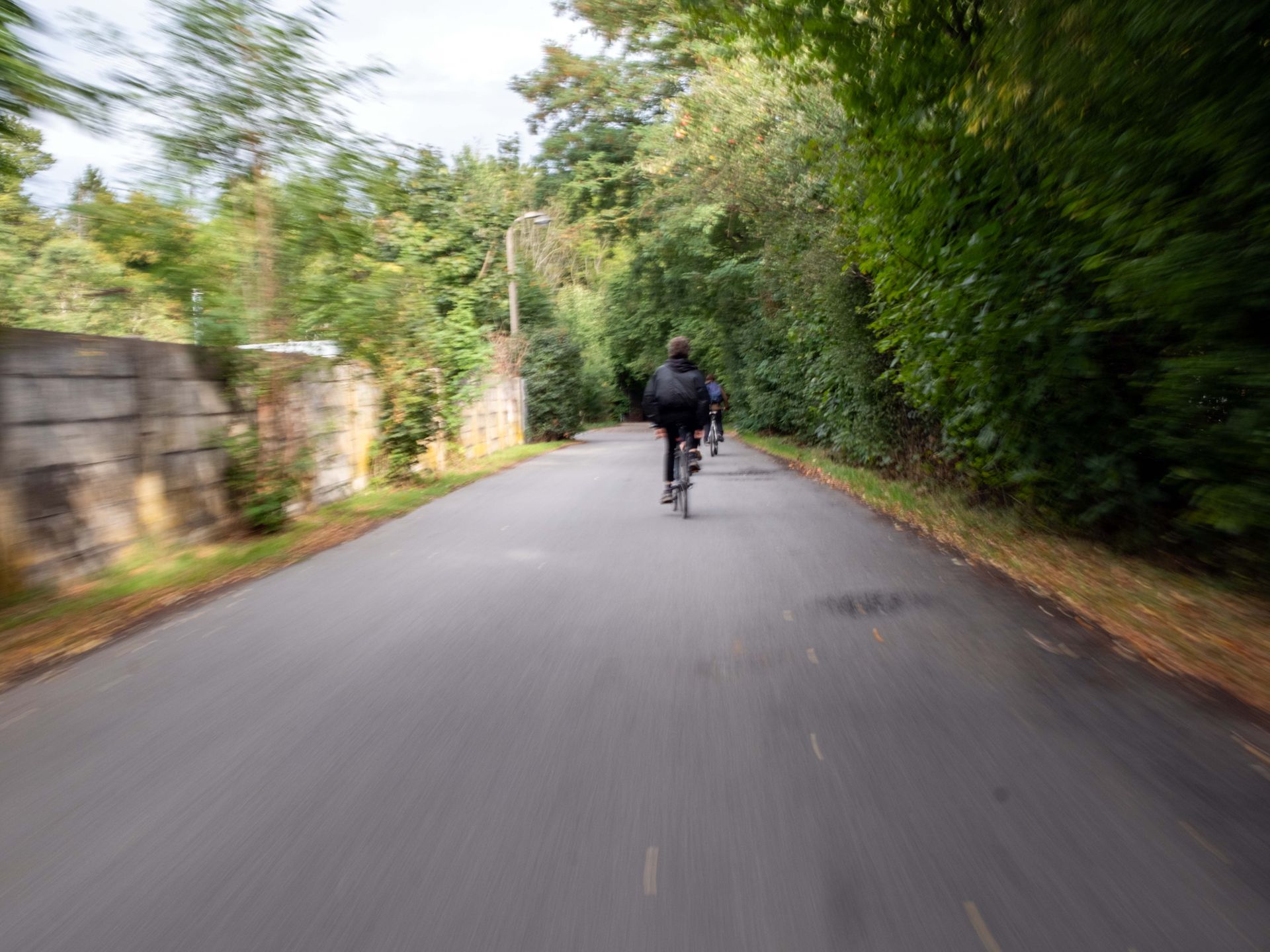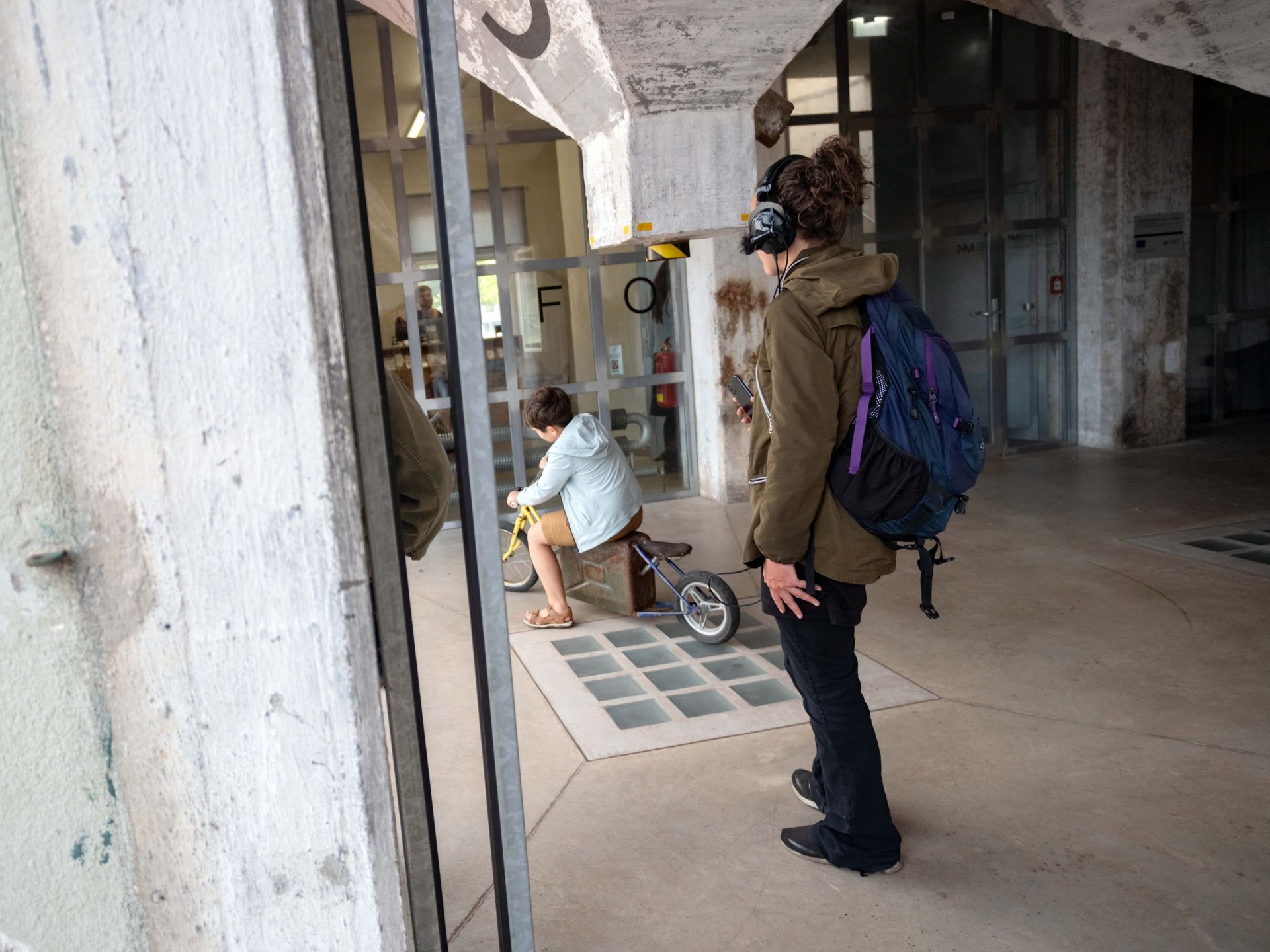 Pojedeme pomalu, ale ne tak docela. Pomalu, abychom mohli vnímat zvuky, které jsou vůči nám v pohybu i ty, které se zdánlivě nehýbou. Na několika místech se zastavíme, abychom naslouchali pohybu v nehybnosti. Zvuky se nám budou nekontrolovaně vzdalovat a přibližovat v prostoru i v čase. Zvukové otisky v paměti vytvoří scénografii pro překryv časově různých událostí. Malý výzkum pohybu, percepční experiment, paměťové puzzle, společná projížďka na kolech do míst, kde to možná neznáte..