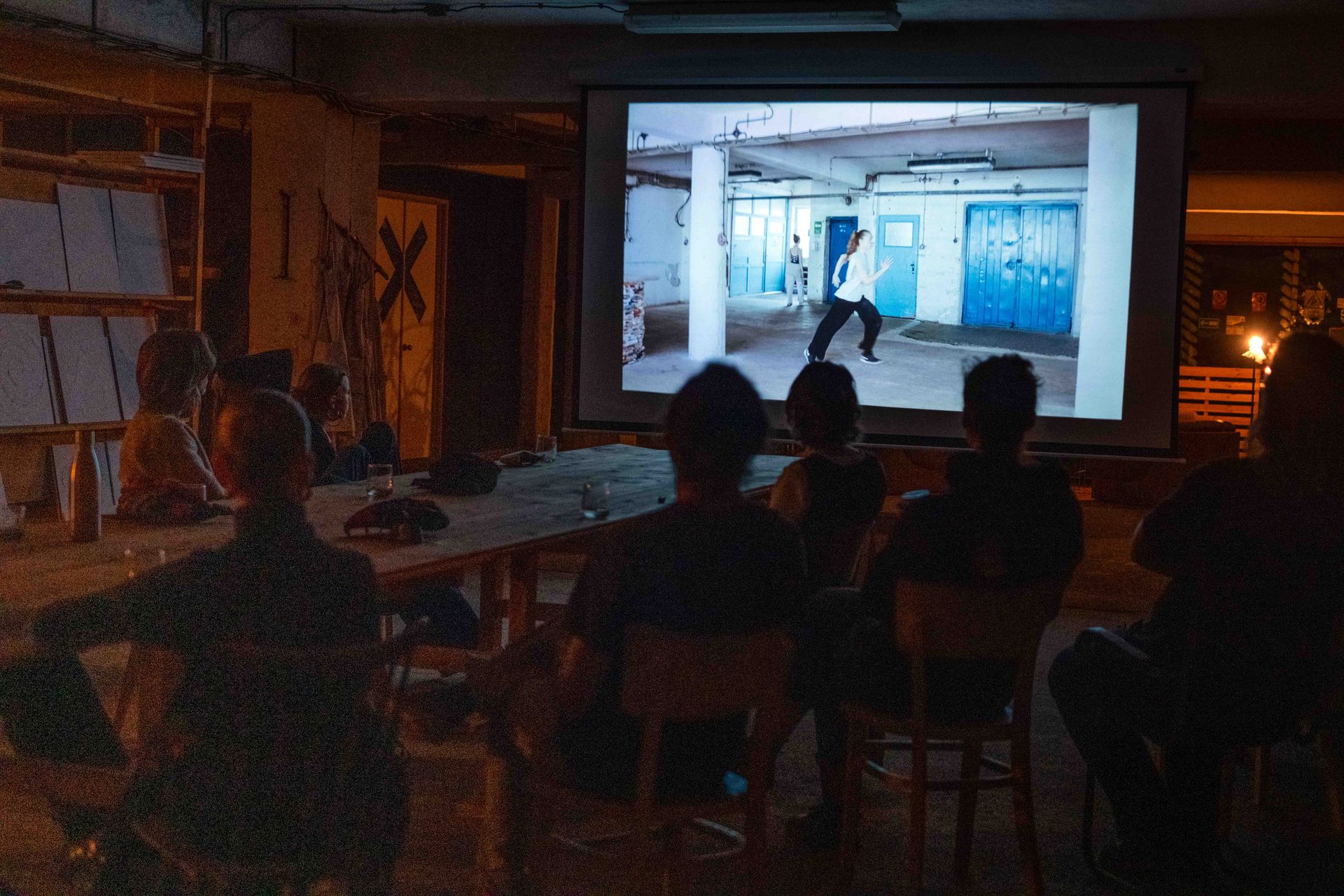 Následně bude všem promítnut výsledek umělecké rezidence – video dokumentující taneční průzkum prostoru. Video představuje umělecké objevování ateliéru, odhaluje jeho vrstvy prostřednictvím nuancovaného pohybu a pohledu kamery. Nabízí nový úhel pohledu na atmosféru a význam tohoto místa.